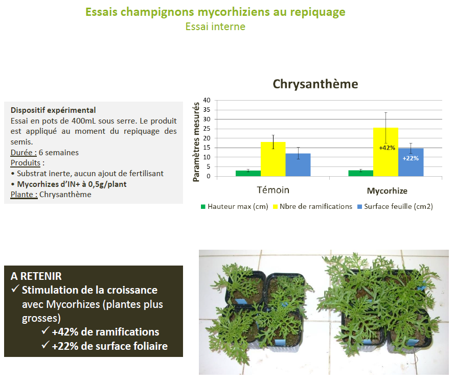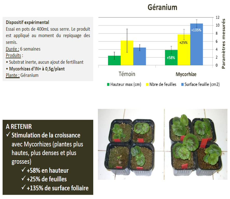 - Système racinaire plus sain et plus dense avec une capacité largement améliorée d’obtenir des nutriments du sol